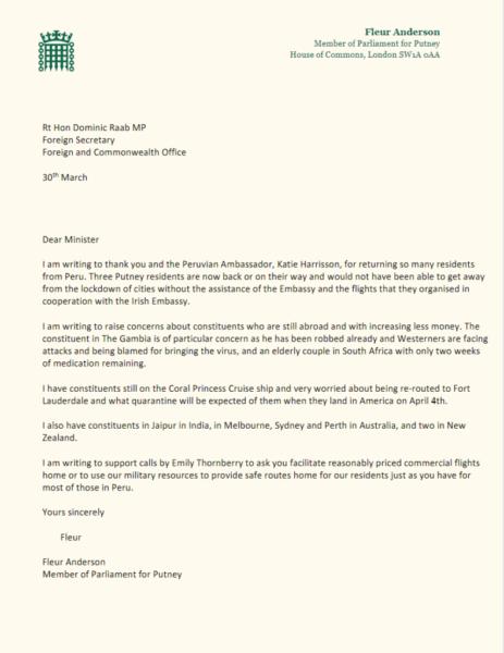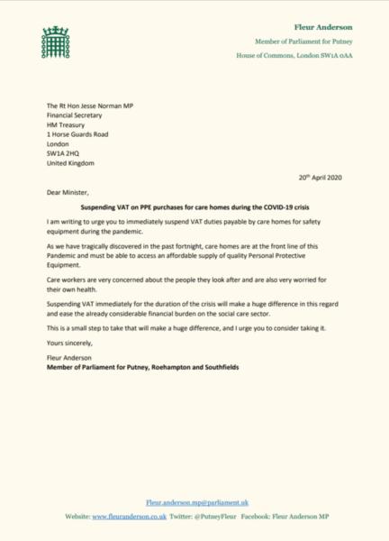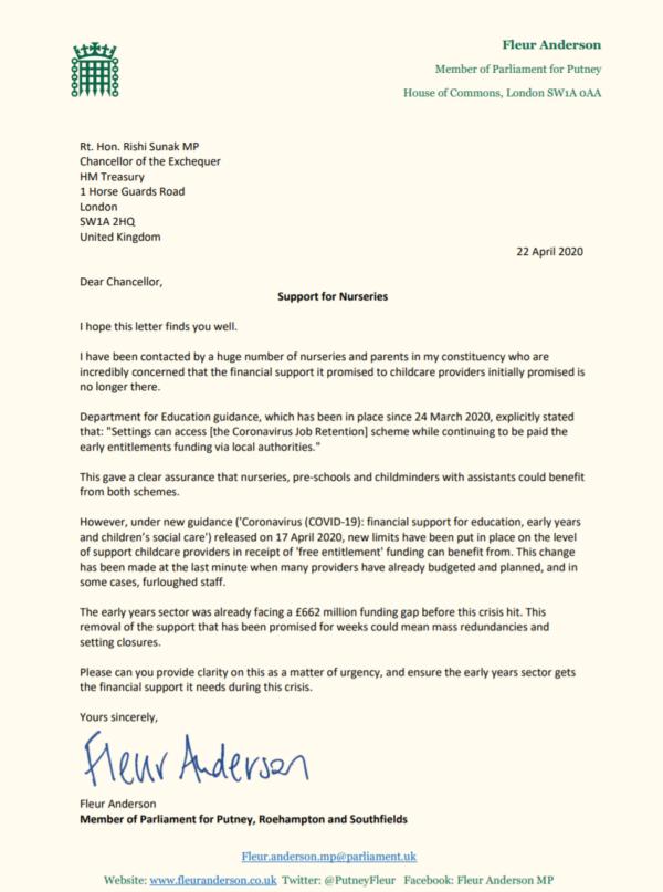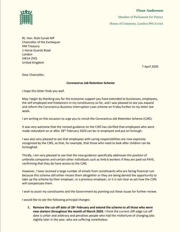 Letter: Fleur Demands Improvement to the Coronavirus Job Retention Scheme