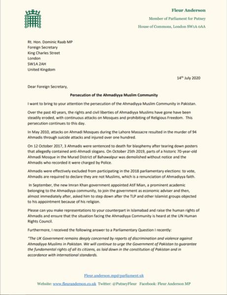 Letter: Human rights of the Ahmadiyya Muslim Community