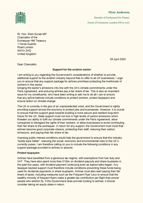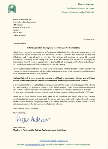 Letter: Fleur requests extension to the Self-Employed Income Support Scheme (SEISS)