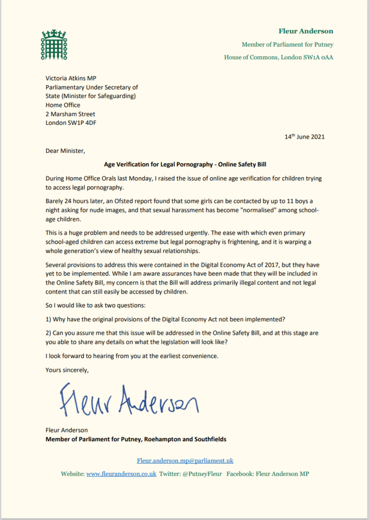 Letter: Age Verification for legal Pornography