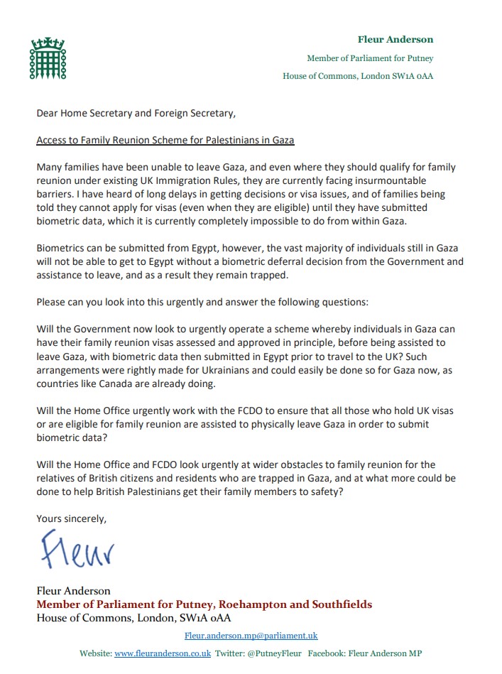 Letter to the Home Secretary and Foreign Secretary on Palestinian Visa Scheme