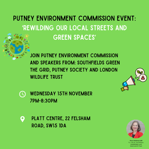 Now more than ever, it is so important that we protect the green spaces we have but also do all we can to create new patches of green and wild spaces in London and nationwide. Come along to this event and here from inspiring speakers from: Southfields Green the Grid, Putney Society, London Wildlife Trusts, and local residents who are making a difference to their local area. This is a free event and everyone is welcome. Light refreshments included.