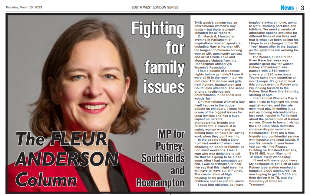 Fleur Anderson MP's Wandsworth Times Column - 16th March 2023